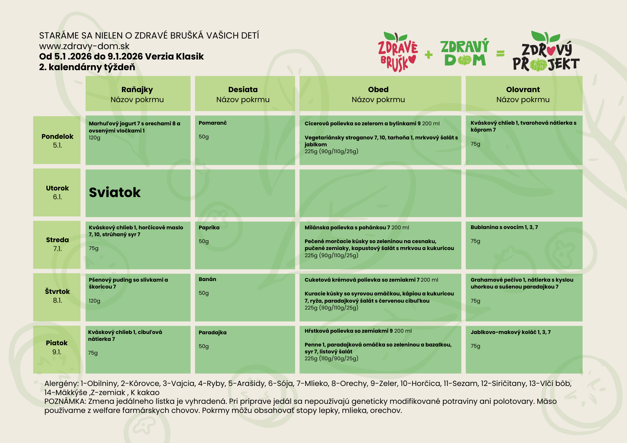 Všetky aktuálne jedálničky v rôznych diétach nájdete na stránke zdravy-dom.sk